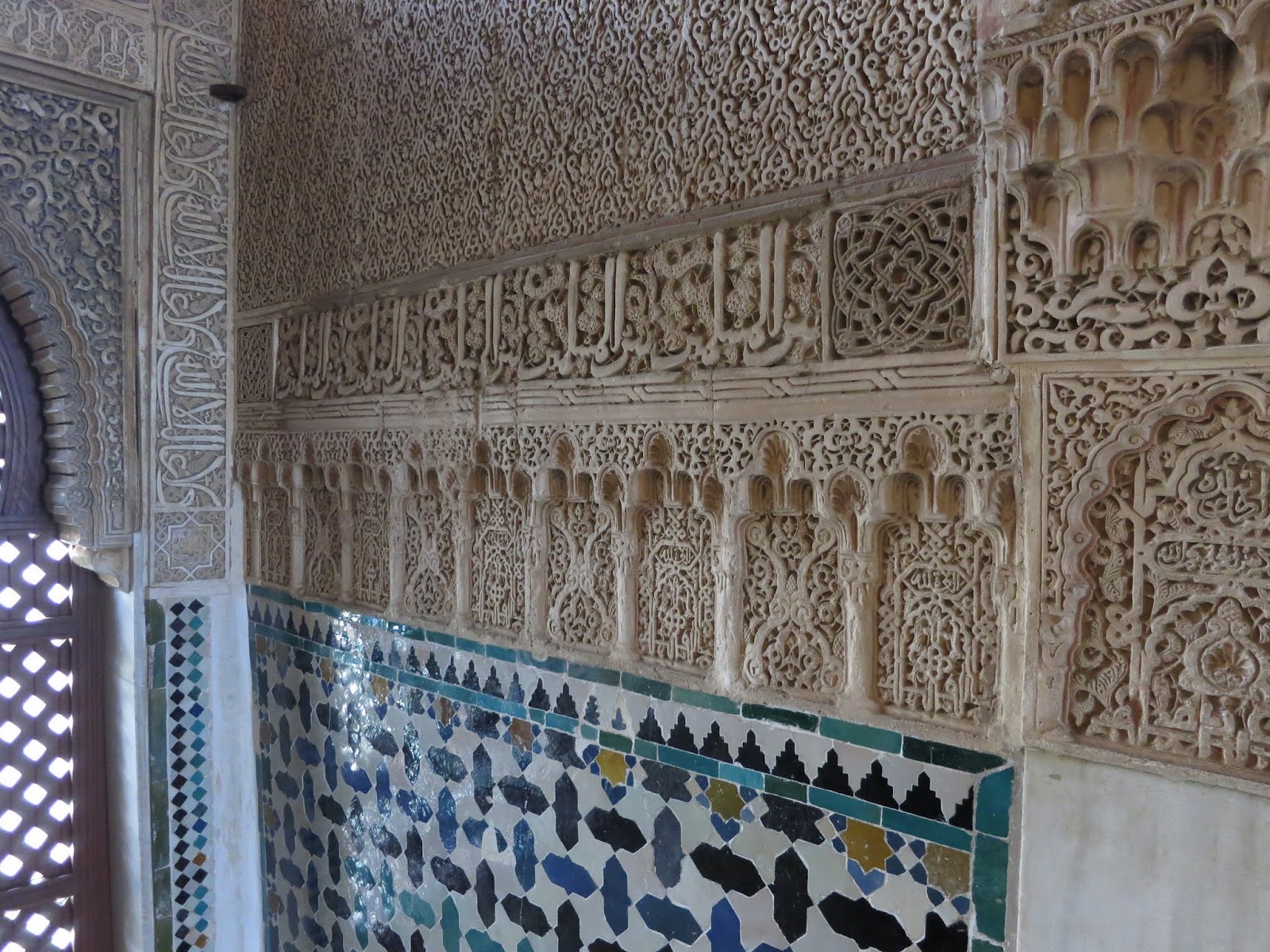 The painted tiles and intricate plasterwork is consistent everywhere in the Alhambra. Here is one example with many more to follow.